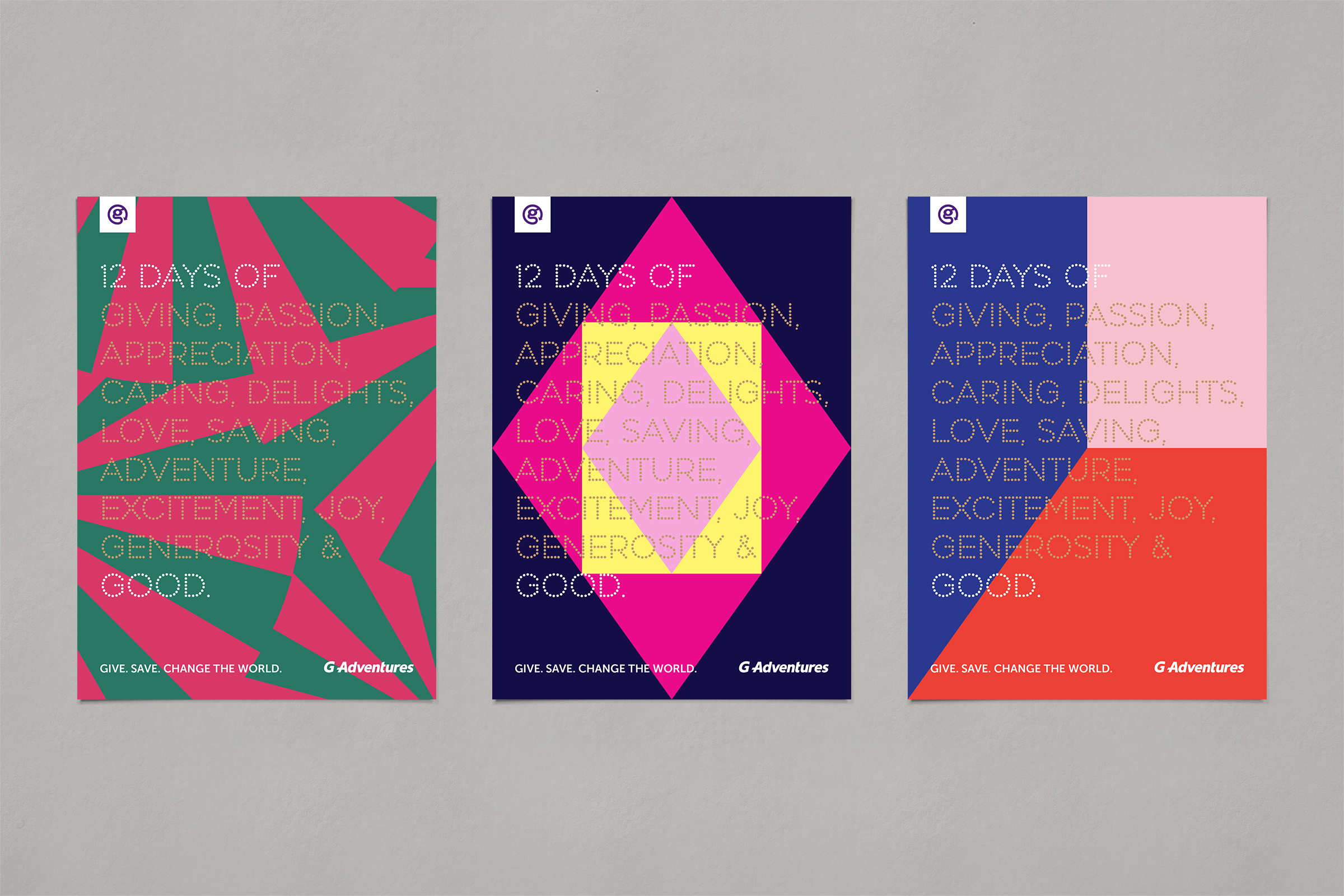 Marketing campaign for travel agents to promote G Adventures’ holiday sale, featuring 12 days of savings on 12 different destinations. Assets include a series of promotional postcards, agent flyer, posters, landing page, display ads and email newsletter.