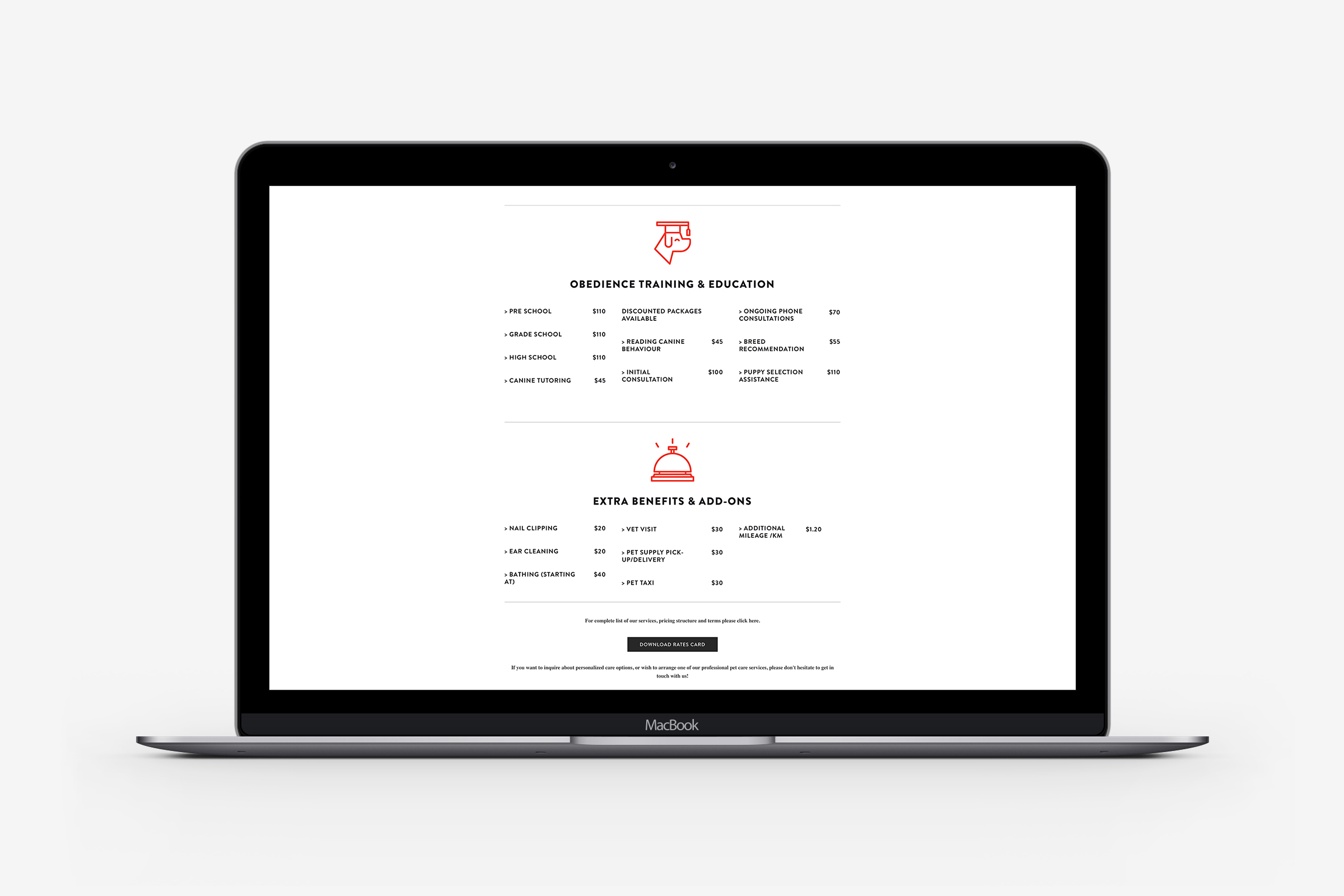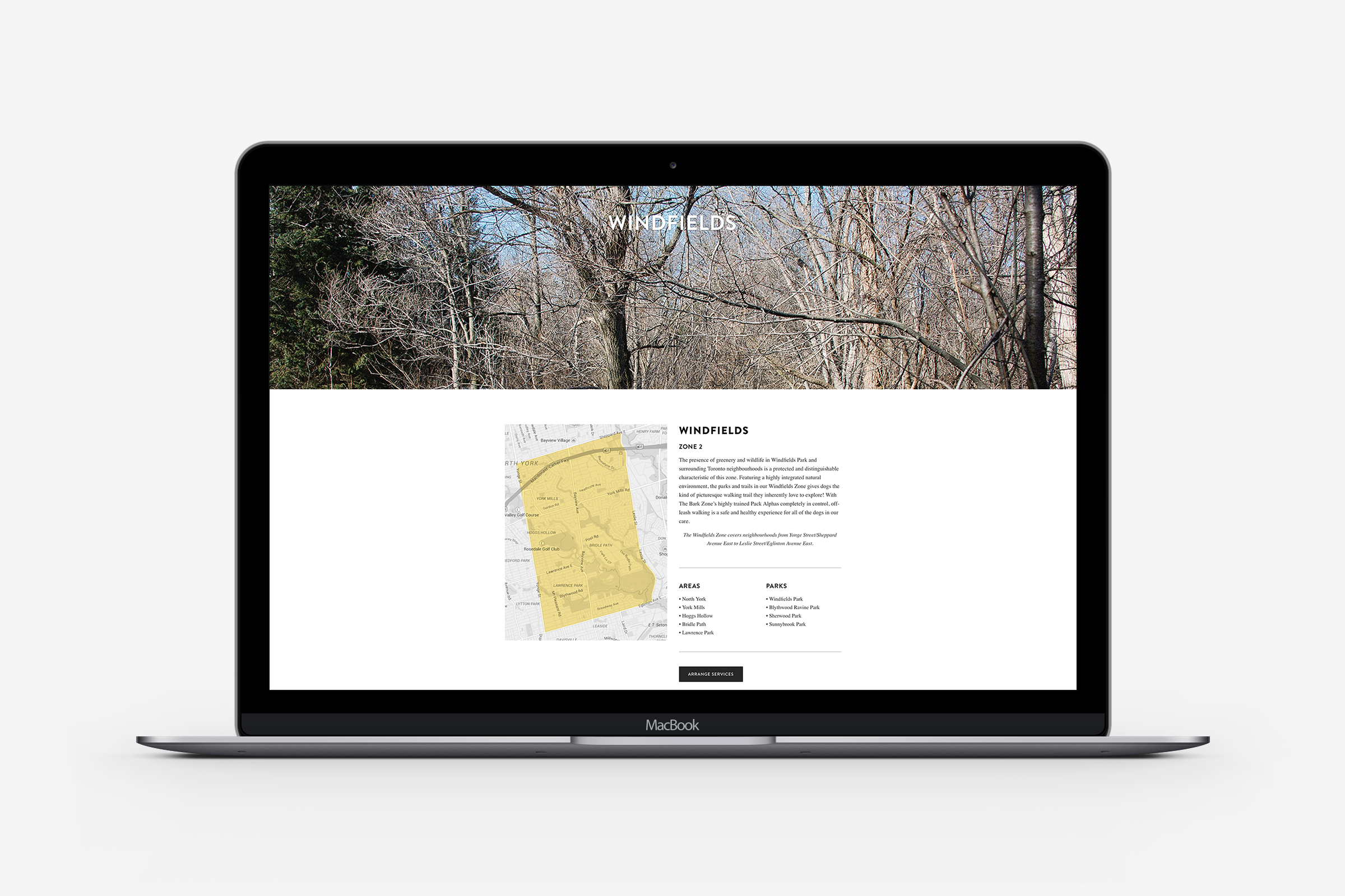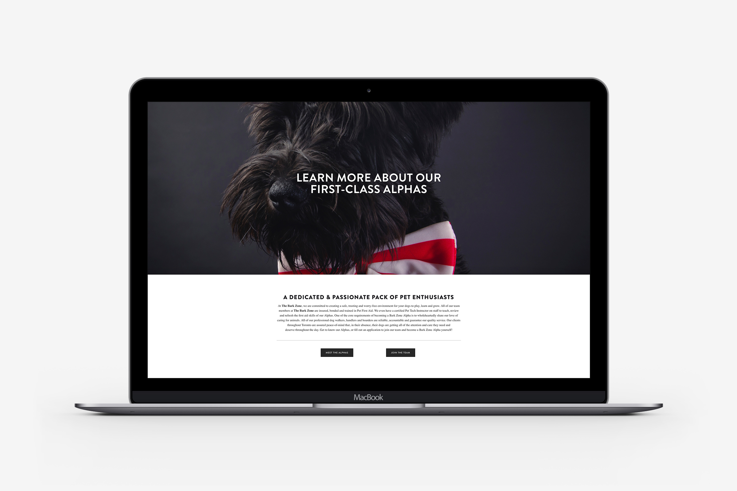 Icons and website design for The Bark Zone, a Toronto based dog walking and pet care services.